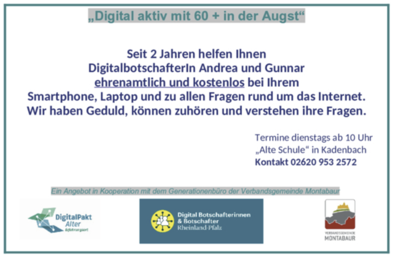 April 21, 2026 @ 10:00 – 12:00 Digitalbotschafter 60+ – Kadenbach