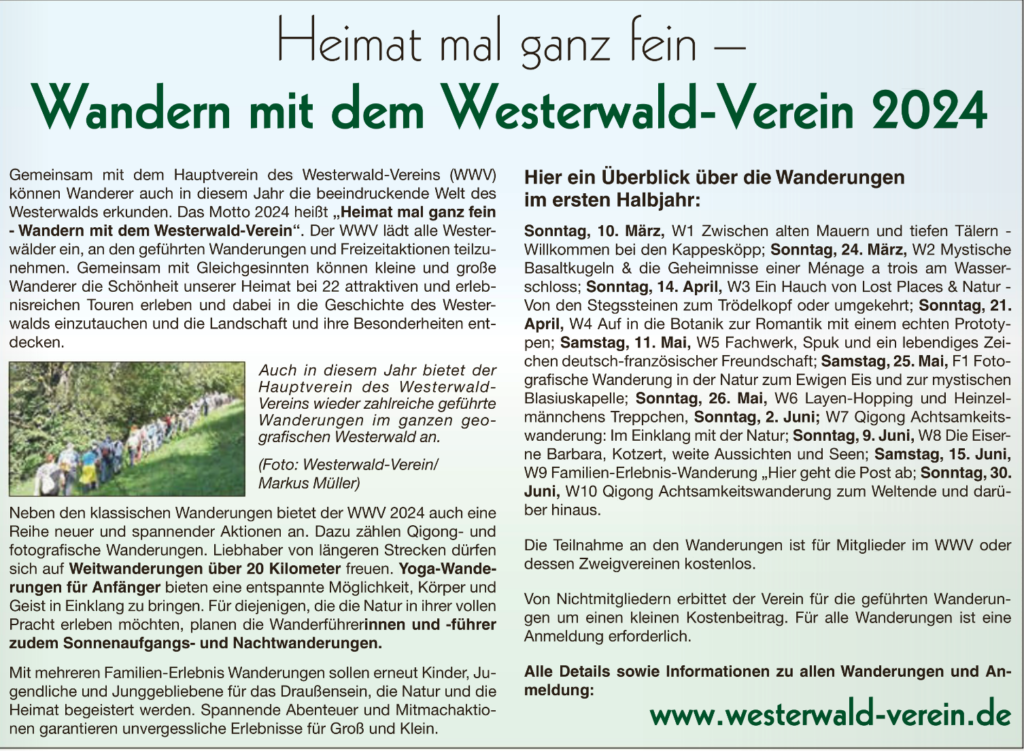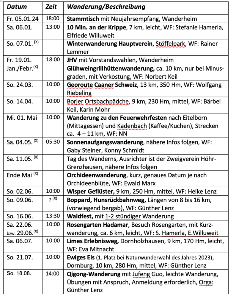 Der Hauptverein bietet 2024 wieder ein vielfältiges Wanderprogramm an: