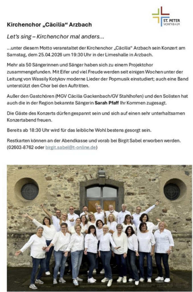 Kath. Kirchenchor „St. Anna“ Neuhäusel informiert