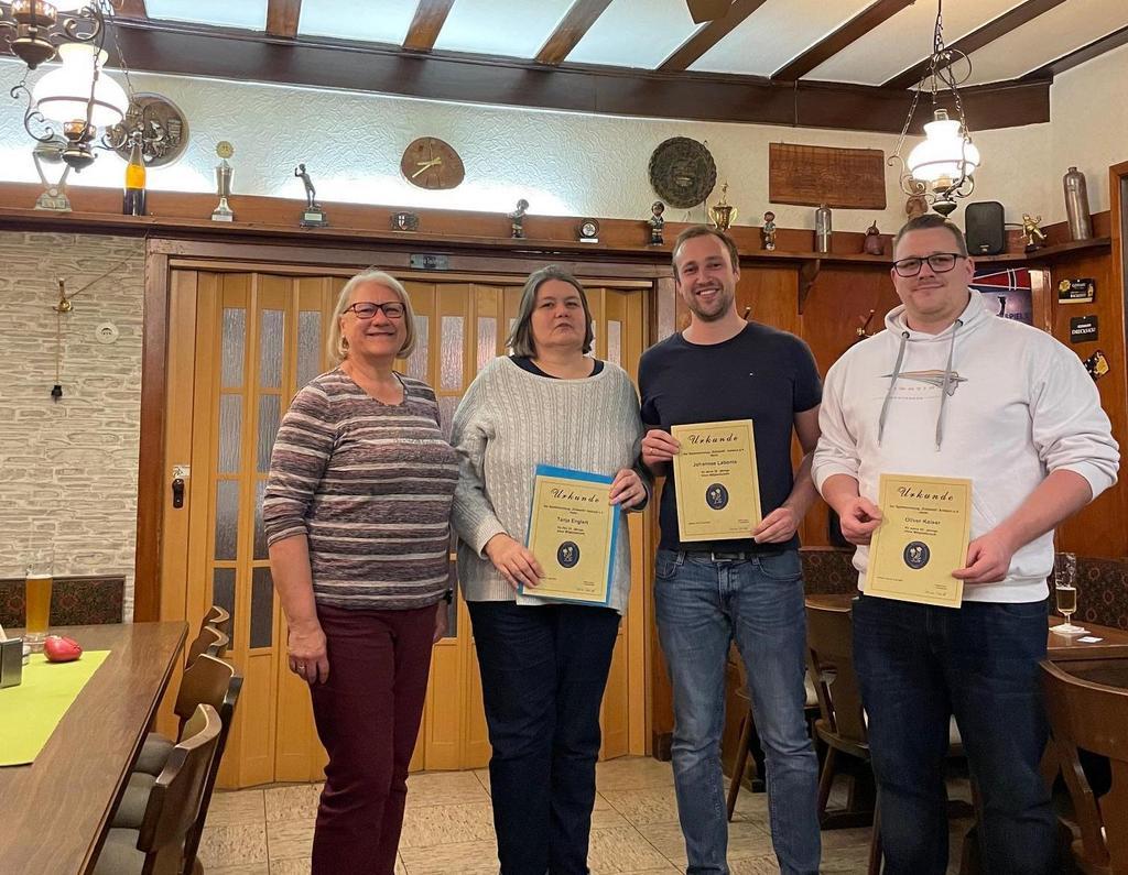 Nach der Begrüßung durch die 1. Vorsitzende und dem Gedenken an unsere verstorbenen Mitglieder ehrte Heike Kaiser die anwesenden Jubilare: Tanja Englert, Oliver Kaiser und Johannes Labonte (alle 25 Jahre Mitgliedschaft) erhielten eine Urkunde und ein kleines Geschenk. Wir gratulieren unseren Mitgliedern und danken Ihnen für Ihre Treue und Ihren Einsatz.