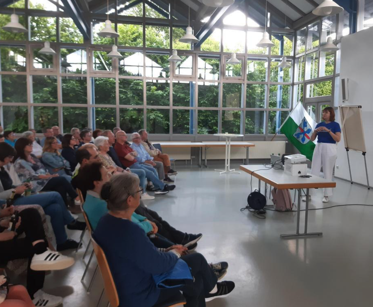 Am 3.7.24 lud die Theatergruppe Arzbach Interessierte ins Pfarrzentrum Arzbach ein, um gemeinsam mit Simone Nopens (die „Sprachforscherin“), die Ergebnisse Ihrer Promotionsarbeit an der Uni Marburg zum Thema: „Wie verbreitet ist der Arzbacher Dialekt mit seiner Besonderheit noch heute in den Generationen“ vorzustellen. Frau Nopens wurde während Ihrer zweijährigen Forschungsarbeit unter anderem von vielen Mitgliedern der Theatergruppe unterstützt. Sie bezog sich in ihrer Arbeit auf die Forschungsergebnisse von Prof. Adolf Bach (Bad Ems) von 1921 zu Besonderheiten des Arzbacher Dialekt als eine Sonderform im moselfränkischen Sprachraum. Ferner ging sie auch kurz auf die in den letzten zwei Jahrzehnten erfolgten wissenschaftlichen Untersuchungen von Björn Köhnlein und Alexander Werth (Beide ebenfalls Uni Marburg) ein, die ebenfalls unter Beteiligung der Bevölkerung dazu vor Ort geforscht haben.