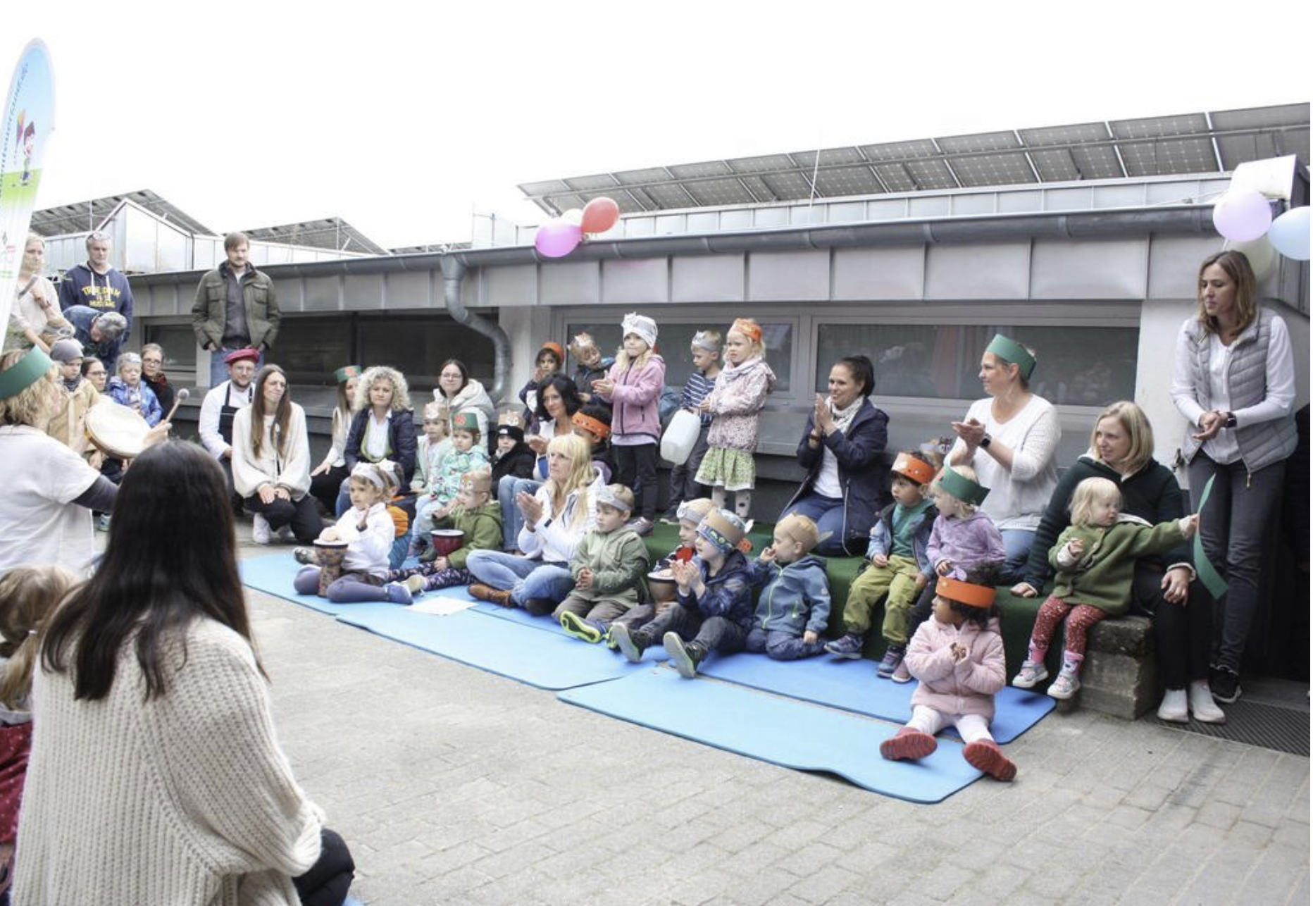 Auf einem vorbereiteten Banner des Fördervereins der Kita bestand die Möglichkeit, sich durch eine Patenschaft für unsere geplante Kletterwand mit Namen zu verewigen – ein Projekt, das unseren Spielplatz bereichern wird.