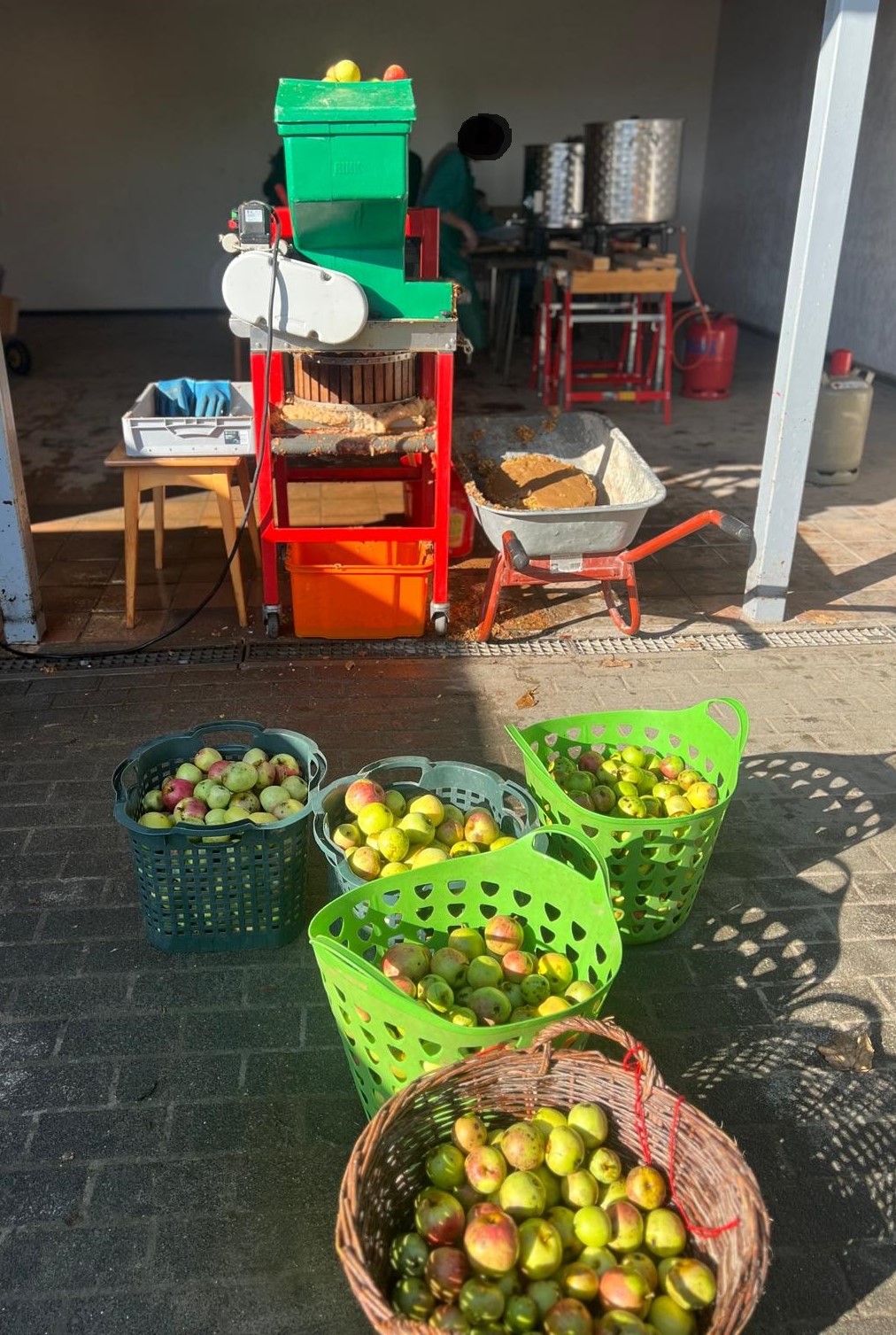 Am 23.10.2024 besuchte uns dann Herr Musil mit einer Apfelpresse. Mit Unterstützung einiger Eltern und Großeltern wurden die Äpfel aussortiert, gewaschen und mit Hilfe der Apfelpresse entstand ein leckerer Apfelsaft. Dieser wurde begeistert vor Ort probiert und im Anschluss konnte der frisch gepresste Apfelsaft käuflich erworben werden.