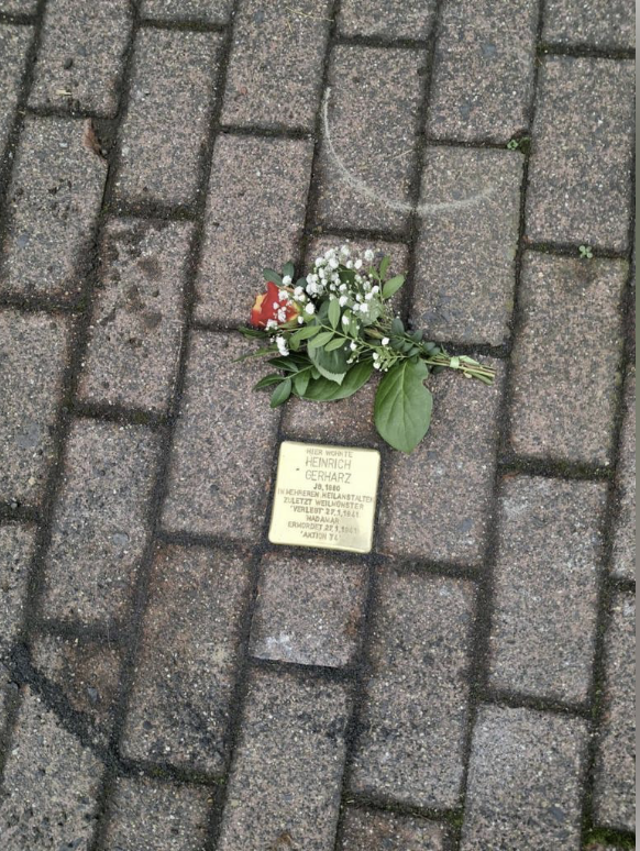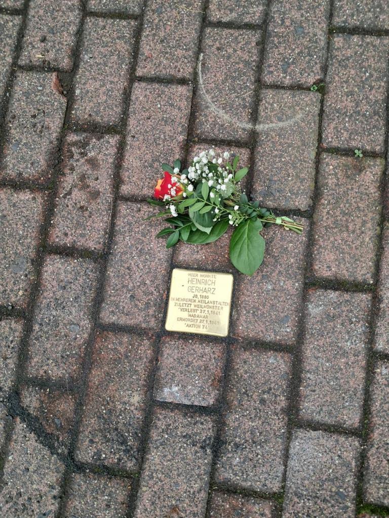 Auf Initiative von Herrn Wolfgang Dieler fand am 21.11.2024 die Verlegung eines Gedenksteins (Stolpersteins) im Andenken an Herrn Heinrich Gerharz statt. Dieser wurde am 27.01.1941 in die Landesheil- und Pflegeanstalt Hadamar eingewiesen und mit hoher Wahrscheinlichkeit noch am gleichen Tag von dem nationalsozialistischen System ermordet.