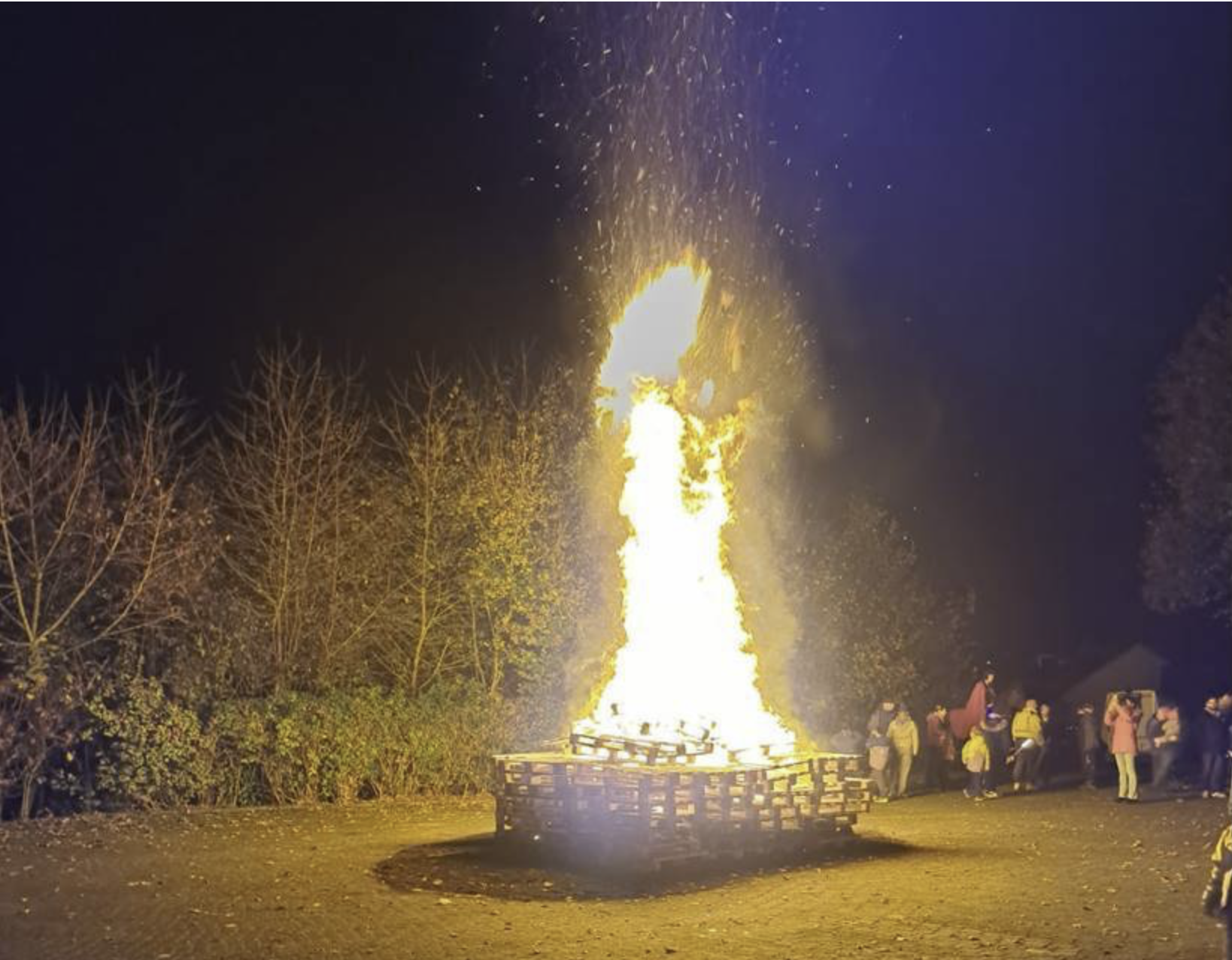 Hier konnten die Kinder noch einmal ganz nah das Pferd und den Sankt Martin anschauen und im Anschluss das schöne Feuer bestaunen. Selbstverständlich wartete auf unsere Jüngsten nach Ankunft am Dorfplatz auch ein leckerer Martinsbrezel.Bei schönem Wetter, wärmenden Feuer, Essen und Getränken konnte Sankt Martin auf dem Dorfplatz gefeiert werden.