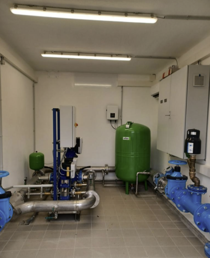 Die Anlage erzeugt einen Wasserdruck von 4,0 und 5,5 Bar – entsprechend der DIN. So wird auch die Versorgung mit Löschwasser rund um den Rabenberg sichergestellt. Die neue Station hat eine Fotovoltaikanlage und einen Stromspeicher, so dass sie weitgehend autark ist.