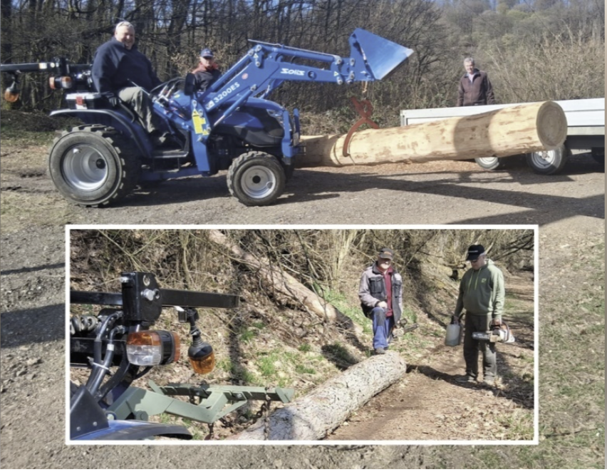 Unser Vereinsmitglied Fritz Gerharz hatte schon eine Idee für diese Aufgabe: Mit rustikalen Holzstämmen aus dem Arzbacher Gemeindewald sollte eine Umrandung als Sitzgelegenheit gebaut werden.