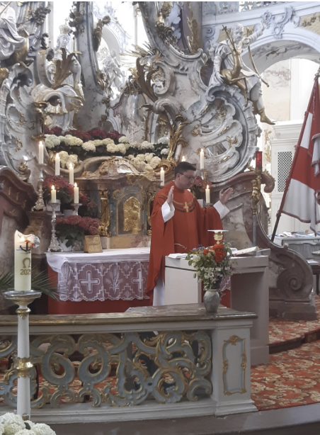Am zweiten Tag der Tour führte uns der Weg in die nahegelegen Wallfahrtsbasilika Vierzehnheiligen. Dort erwartet uns eine sehr originelle Führung durch Franziskanerpater Stanislaus, der uns die Wallfahrts- und Baugeschichte der wunderschönen barocken Klosterkirche von Balthasar Neumann, kurzweilig erläuterte. Daran schloss sich eine Messe am Gnadenaltar mit unserem Mitglied Kaplan Sven Merten an; ein ganz besonderes Erlebnis für die ganze Gruppe.