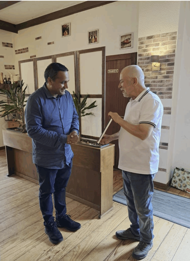 Auch Herrn Singh begrüßte Ortsbürgermeister Poetzsch mit einem Präsent der Ortsgemeinde. Er freue sich sehr, dass der Betrieb ohne Unterbrechung weitergehe und die Arzbacher sowie ihre Gäste sich weiterhin auf kulinarische Genüsse freuen dürften. Er wünsche dem neuen Betreiber viel Erfolg im „neuen“ Restaurant.