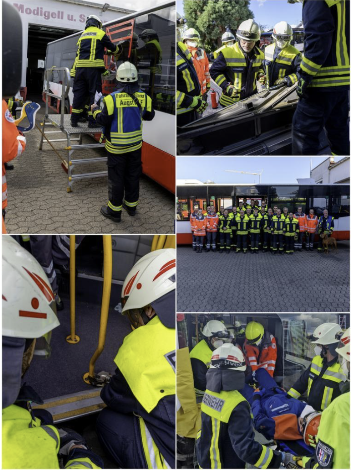 Am Samstag, den 30.08.2025 durften wir mit dem DRK – Ortsverein Augst auf dem Gelände der Firma Modigell & Scherer in Neuhäusel an einem ausrangierten Bus praxisorientiert arbeiten. Es wurden die Abläufe und Rettungsmaßnahmen beübt. Dazu gehört zum Beispiel die Ersterkundung, das Sichern und Stabilisieren sowie das Entfernen der Panoramascheibe. Auch die Rettung verunfallter Personen mit einem hohen technischen Aufwand wurden vorgestellt. Dazu zählen das Schneiden der Säulen sowie der Seitenwände zur Platzgewinnung. Ebenfalls wurden Sitze mit verschiedenen Einsatzmitteln entfernt und nach außen verbracht. Auch die Rohbaustruktur eines Stadtbusses mit den unterschiedlichsten darin verbauten Werkstoffen und Fahrzeugscheiben wurden thematisiert. Eine außergewöhnliche, sicherlich lehrreiche und spannende Übung. Wir möchten uns noch einmal für die Bereitstellung des Geländes und des Busses bedanken. Beides wurde von der Firma Modigell & Scherer zur Verfügung gestellt.