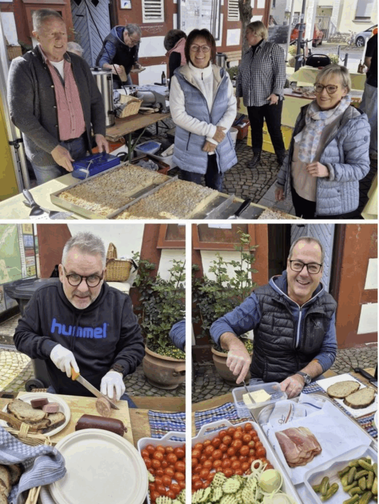 Die meisten Brote benötigte man für das kulinarische Angebot an diesem Tag. Wie am Fließband wurde von fleißigen Vereinsmitgliedern Butter auf Brotscheiben geschmiert und mit Hausmacher Wurst oder Schinken belegt. Aber auch der leckere „Blechkuchen“ mit einer Tasse Kaffee fand seine Liebhaber. Für die „Kleinsten“ gab es kostenlos Backesbrot mit Nutella.