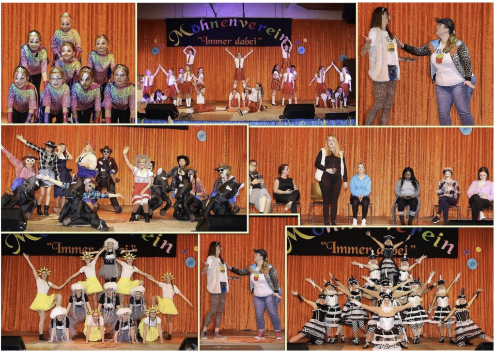 Einen „dollen Tanz“ boten danach die „Hupfdohlen“ als Cowboys mit ihren Pferden nach bekannten Ohrwürmern. Sehr nahe an der Realität waren die „Feier Queens“ in ihrem Vortrag „Eltern-Whats-App-Gruppe“, wo so manche Verwechslung und Eigenheiten in der Mütterdiskussion offenbart wurden. Als „Jens Blond – Agent in der Ausbildung“ fragte das Windener BubeBallett in ihrer Tanzdarstellung, „Hey was geht ab, wir feiern die ganz Nacht“. Im Sketch „Sit and wait“ (Jasmin Herschbach, Carina Ortel und Daniela Spitzhorn) wurde den Zuschauern deutlich gemacht, dass sich Geduld auszahlt, irgendwann erscheint jedem mal der „Engel“ auch wenn er zum Fliegen auf eine Stehleiter klettern muss. Mit dem Solomariechen Zoe vom TuS Bannberscheid, eine tänzerische Safaritour der „Möhnlight Dancers“ als „Ranger“ und 14 tollen Schachfiguren (Hupfdohlen), die in sehr schmucken Kostümen tänzerisches Schach darboten, servierten im Anschluss die „Feier Queens“ eine tolle Performance „Eis und Candy“ und ließen die Besucher bildlich an so manchem süßen Loly lutschen. Kostüm, Ausführung und Darbietung einfach ganz fabelhaft, so die Sitzungspräsidentin. Bevor im Finale unter dem Motto „Farben“ eine bunte Schow mit diversen „Ohrwurm-Farbenhits“ nochmals durch alle Möhnengruppen abgebrannt wurden, demonstrierten die „Dreamdancer“ in ihrer Choreografie mit Lichteffekten und waghalsigen Pyramiden, Showtanz der Perfektion von einem „anderen Stern“. 22 Avatare ließen die Narrhalla beben. „Wir sind so stolz auf Euch“, so die Präsidentin zu dieser außergewöhnlichen Darbietung.
