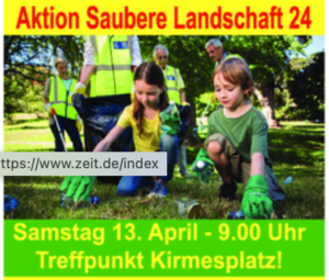 Packen wir es gemeinsam an. Wir treffen uns um 9.00 Uhr auf dem Kirmesplatz in der Gartenstraße und arbeiten uns in kleineren Gruppen – bewaffnet mit Müllsäcken, Handschuhen und evti. Greifstöcken – durch unsere Gemarkung. Ab 11.30 Uhr wartet dann auf dem Kirmesplatz wieder ein Imbiss auf alle großen und kleinen Müllsammler/innen. Wir freuen uns über jede helfende Hand! Ute Kühchen, Ortsbürgermeisterin