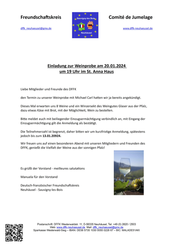 Wir freuen uns auf einen besonderen Abend mit unseren Mitgliedern und Freunden des DFFK, genießt die Vielfalt der Weine aus der sonnigen Pfalz!