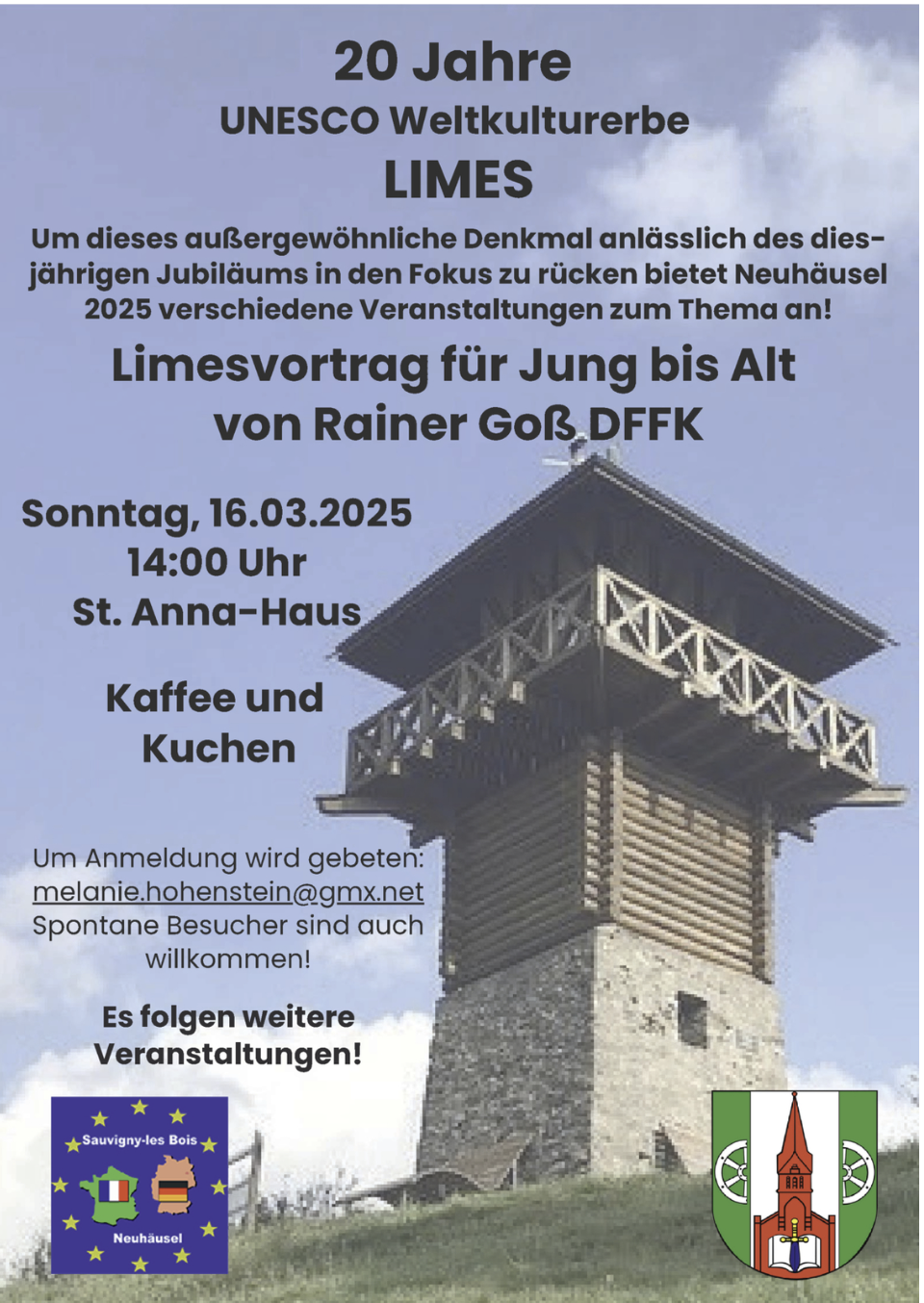 Die Ortsgemeinde Neuhäusel möchte sich aufgrund der Nähe zum Limes aktiv an dieser Aktion beteiligen. Es wird verschiedene Veranstaltungen für jede Altersklasse geben.