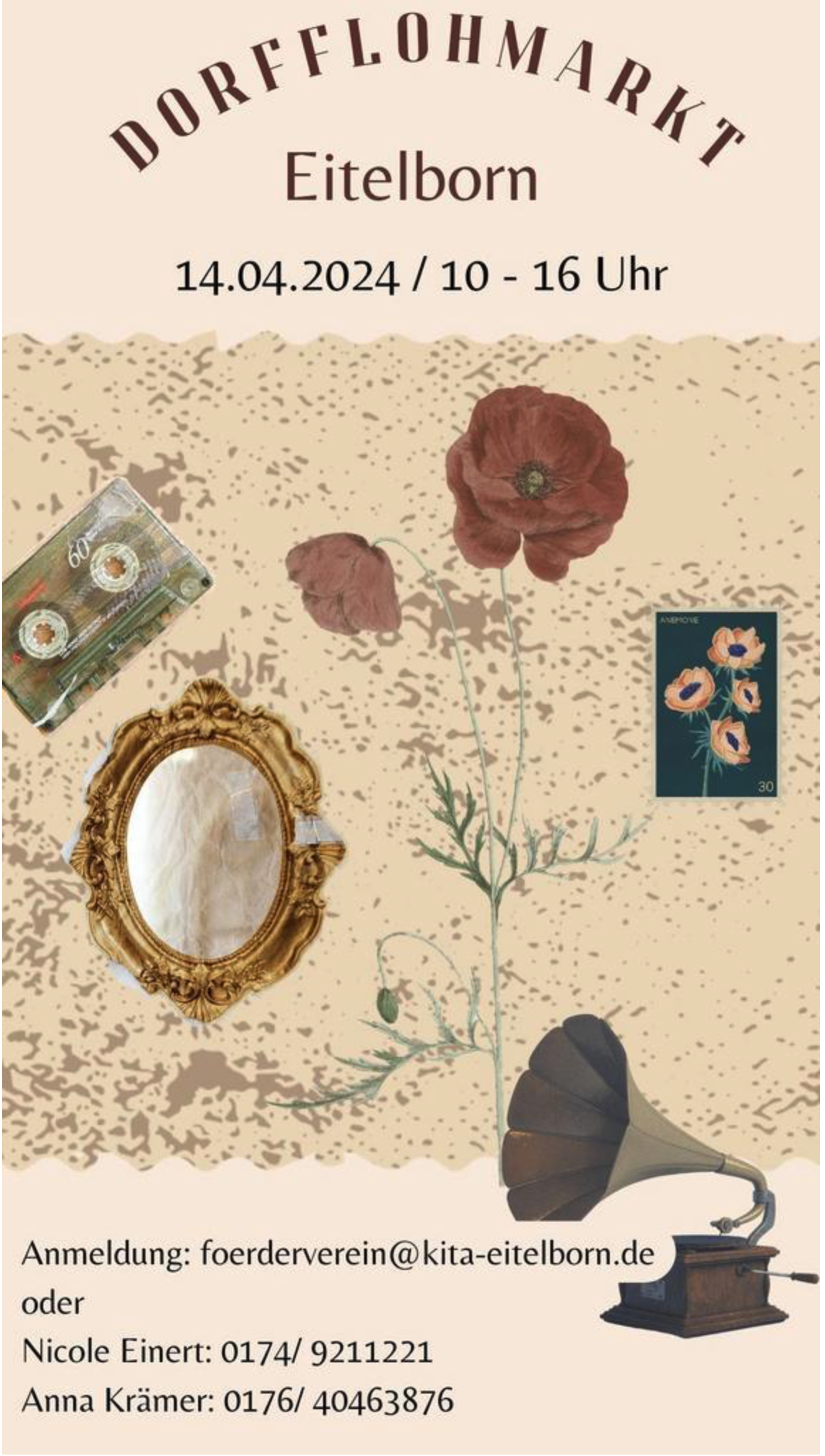 Dazu lädt der Förderverein der Kita „Mariä Himmelfahrt“ in Eitelborn zum Dorfflohmarkt 2024 in Eitelborn ein.
