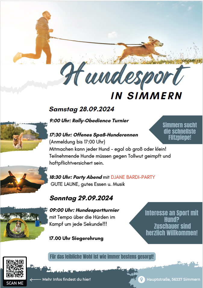 Am 28. und 29.09.2024 lädt der Hundesportverein Simmern Ww. e.V. zum actionreichen Hundesportwochenende ein!