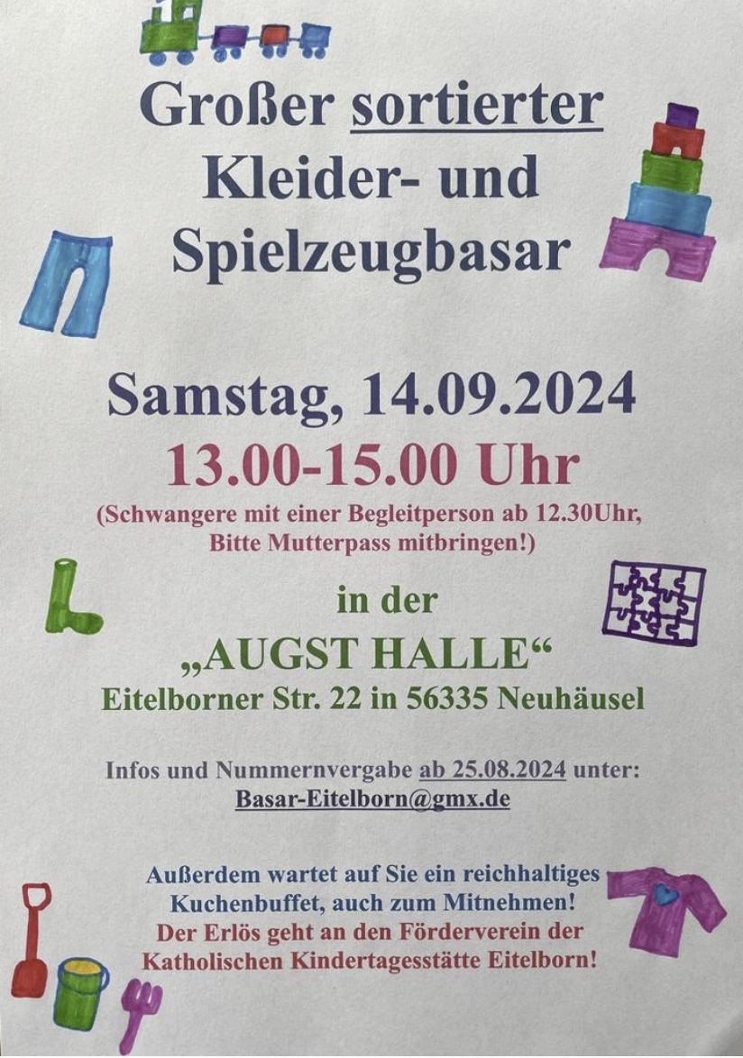 Kita Eitelborn: Großer sortierter Kleider- und Spielzeugbasar