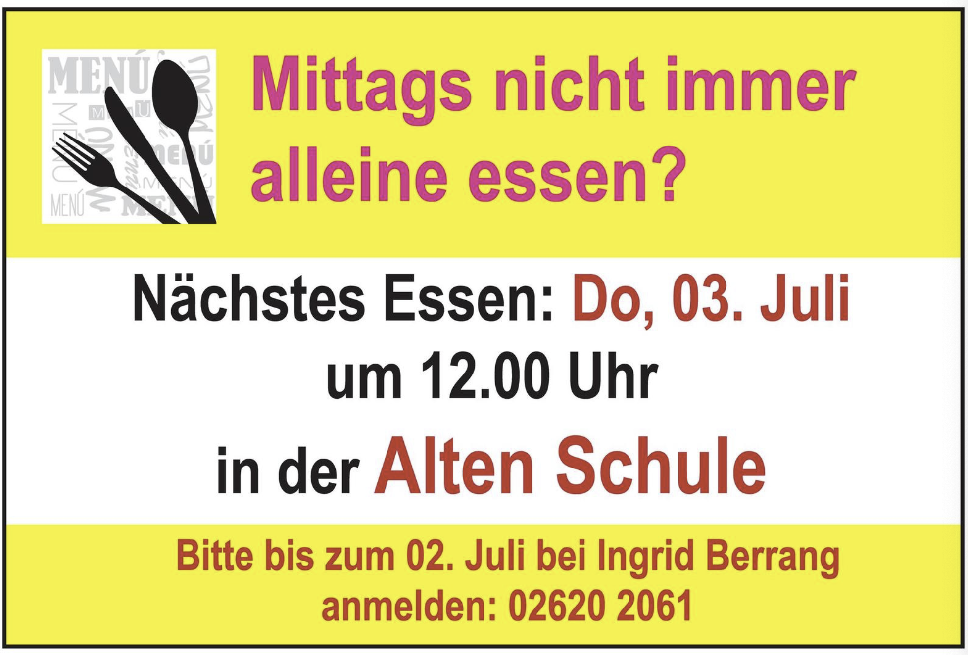 Bitte bis zum 02. Juli bei Ingrid Berrang anmelden: 02620 2061