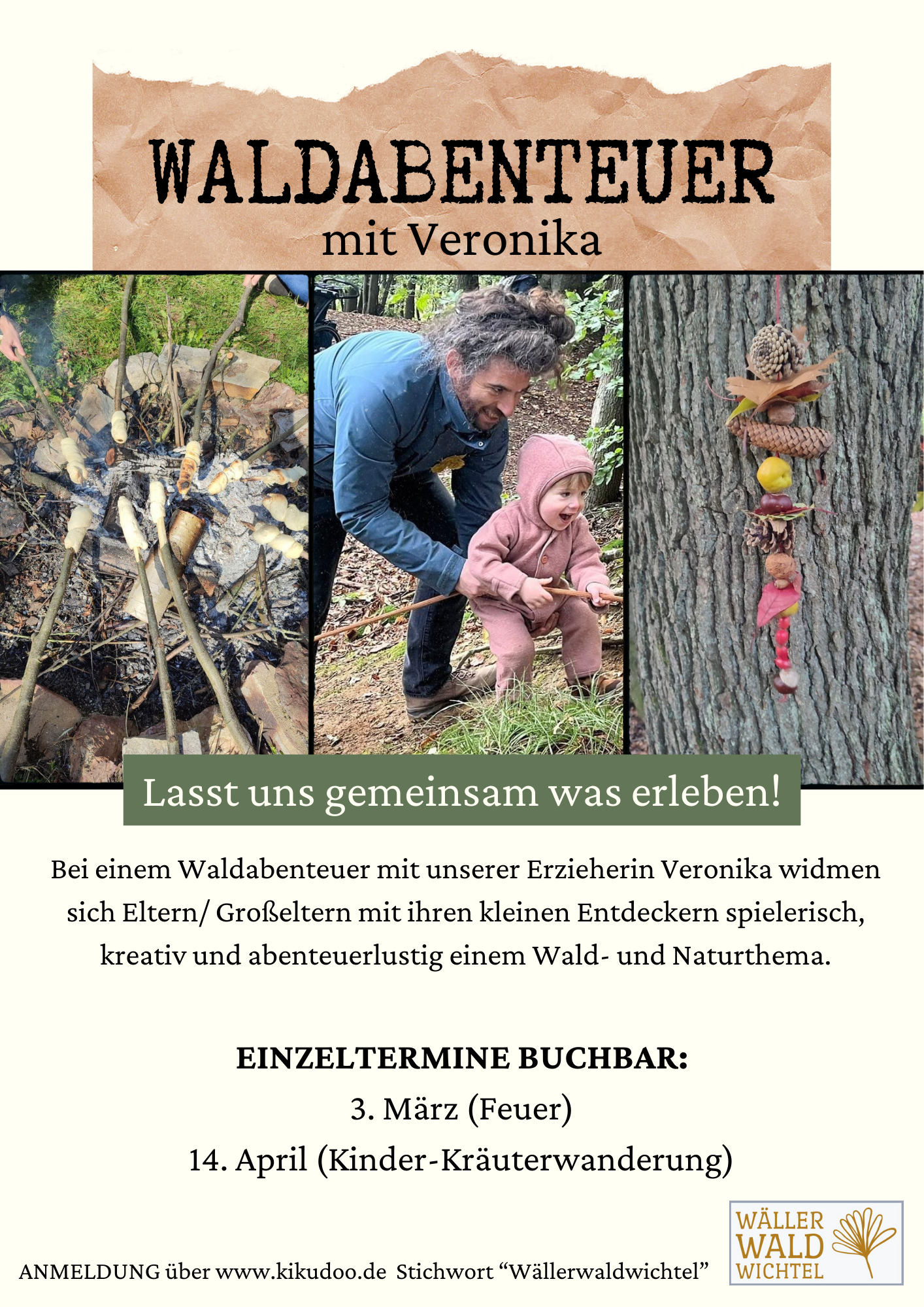 Bei einem Waldabenteuer mit unserer Erzieherin Veronika widmen sich Eltern/ Großeltern mit ihren kleinen Entdeckern spielerisch, kreativ und abenteuerlustig einem Wald- und Naturthema.