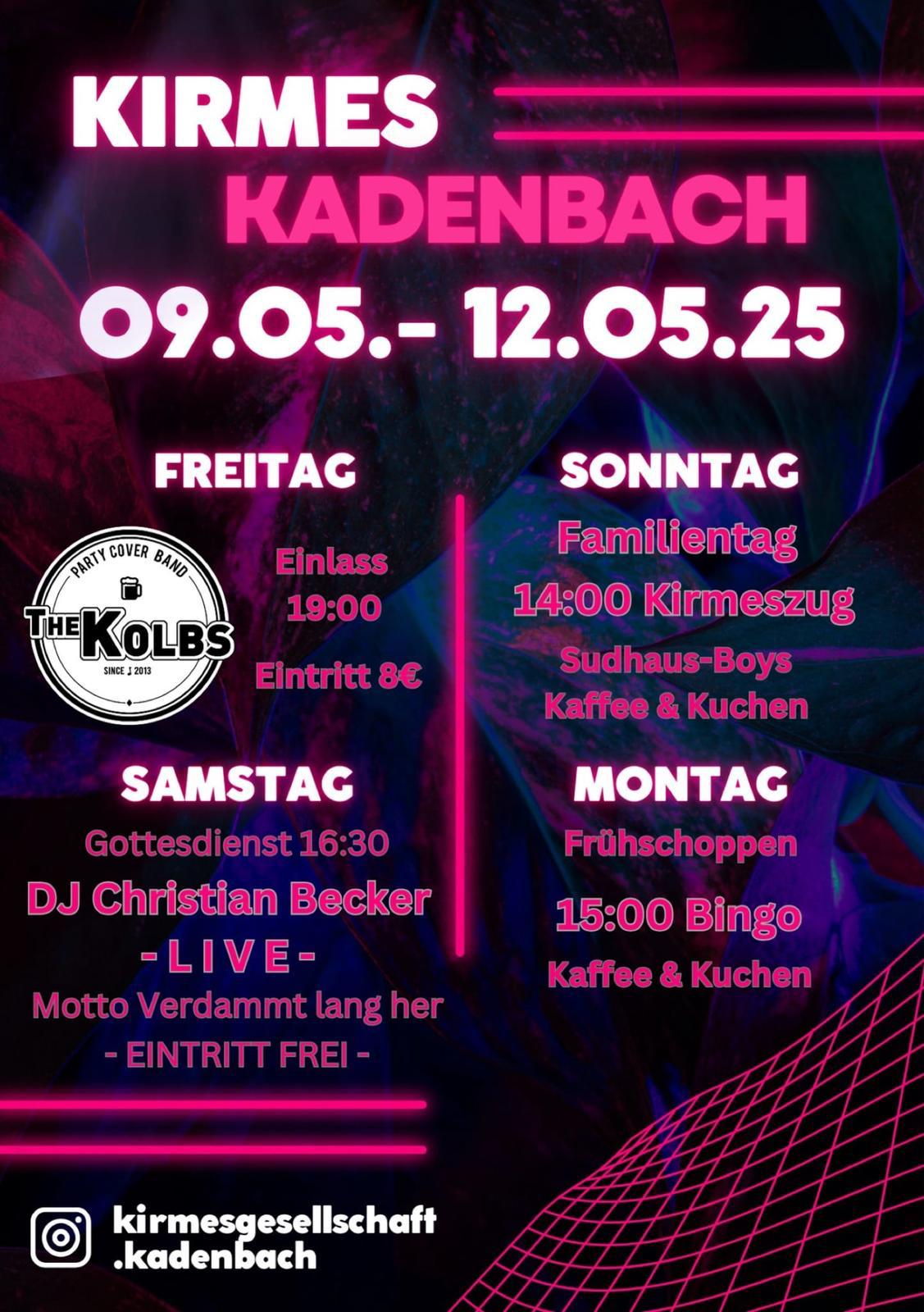 Jahreshauptversammlung 2025: Die diesjährige Jahreshauptversammlung des Karnevals-Club Kadenbach findet am Freitag, den 16.05.2025 um 19:00 Uhr in der Alten Schule in Kadenbach mit folgender Tagesordnung statt: 1. Begrüßung, 2. Feststellung der Beschlussfähigkeit und Genehmigung der Tagesordnung, 3. Totenehrung, 4. Bericht des 1. Vorsitzenden, 5. Kassenbericht, 6. Bericht der Kassenprüfer*innen, 7. Entlastung des Vorstandes, 8. Änderung […]