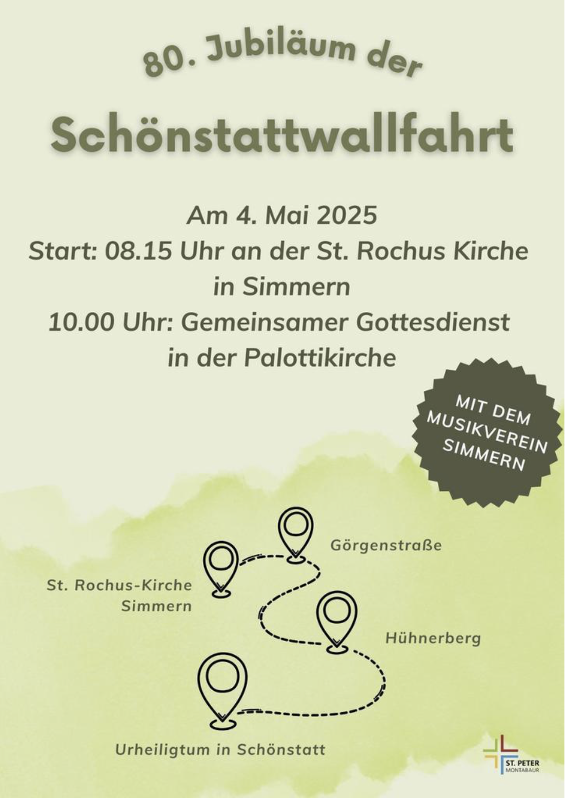 Gelöbnis der Gemeinde St. Rochus Simmern vom 2.2.1945: „Im Angesicht der heiligsten Dreifaltigkeit, in Gegenwart unseres Herrn Jesus Christus, der auf dem Altare thront, im Angesicht der Engel und Heiligen und in geistiger Gemeinschaft mit allen Verstorbenen der Gemeinde geloben und versprechen wir feierlich für alle Zeit: Wir wollen alljährlich am 1. Sonntag im Mai […]