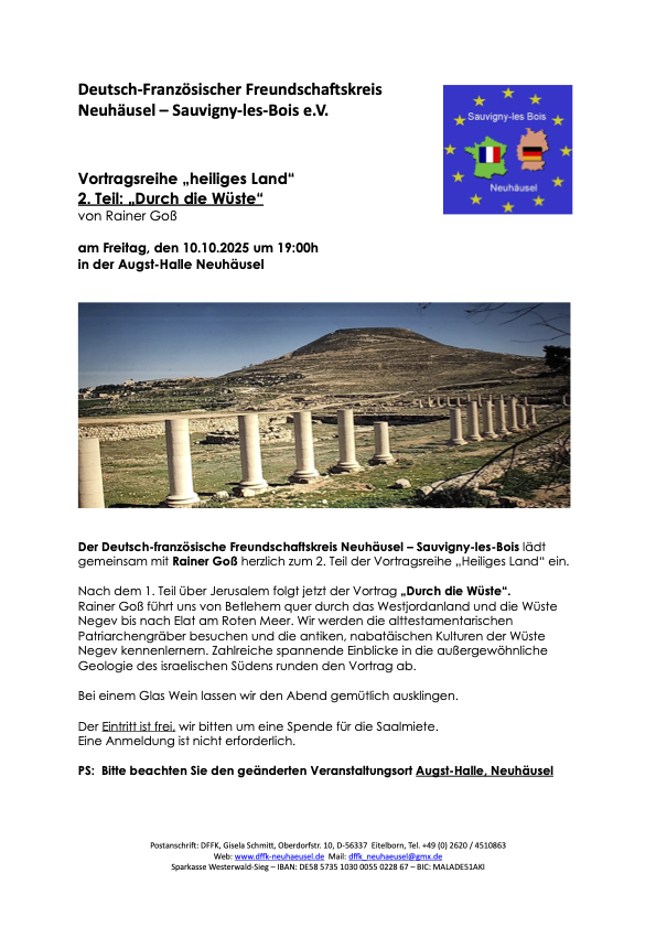 Um die Vorbereitungen zu erleichtern, bitte um Anmeldung bis zum 05.10.2025 bei Frau Ellen Pech, Tel. 02620 32 999 76 (Bitte auch auf den Anrufbeantworter sprechen)