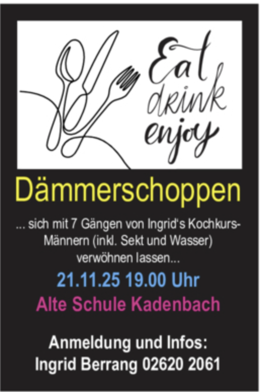 Bitte bis zum 03. November bei Ingrid Berrang anmelden: 02620 2061 |