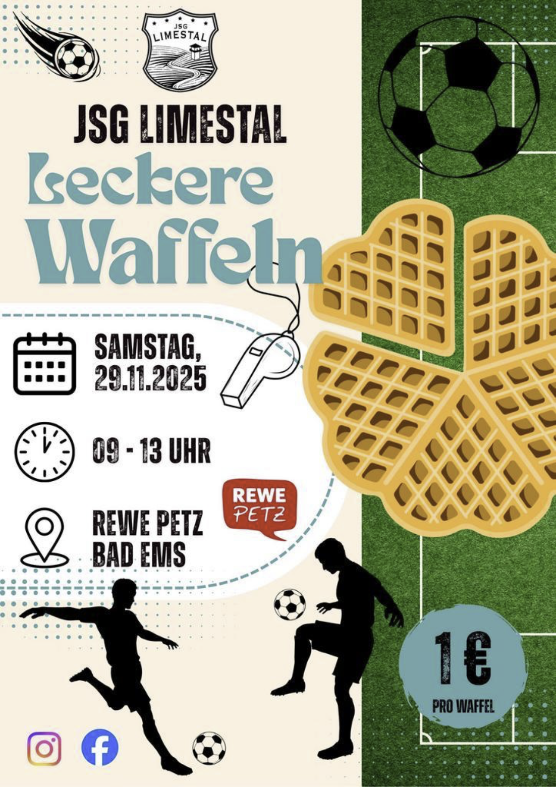 m Samstag, den 29. November 2025 verköstigt die E-Jugend der JSG Limestal die Besucher des REWE Marktes Bad Ems mit frischen Waffeln. Von 9:00 -13:00 Uhr verkaufen die Nachwuchs-Fußballer zusammen mit ihren Eltern frische Waffeln gegen kleines Geld. Mit dem Erlös möchten sie ihre Mannschaftskasse aufstocken. Es wird für ein spezielles Trainingsmaterial gespart, mit welchem […] |