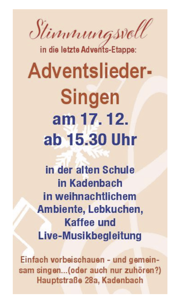 Am 09. Dez. organisiert der Frauenkreis der ev. Kirchengemeinde eine Busfahrt nach Heidelberg. Es sind noch einige Plätze frei. Kosten: 40,00 Euro. Infos und Anmeldung bei Brigitte Kopold, 02620/2608 (auch AB)
